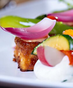 Il nostro menu degustazione si fa in due, il percorso completo, composto da un assaggio di antipasti, un primo, un secondo, un contorno e il dolce, e quello light composto da primo, secondo e contorno. Due esperienze culinarie uniche.